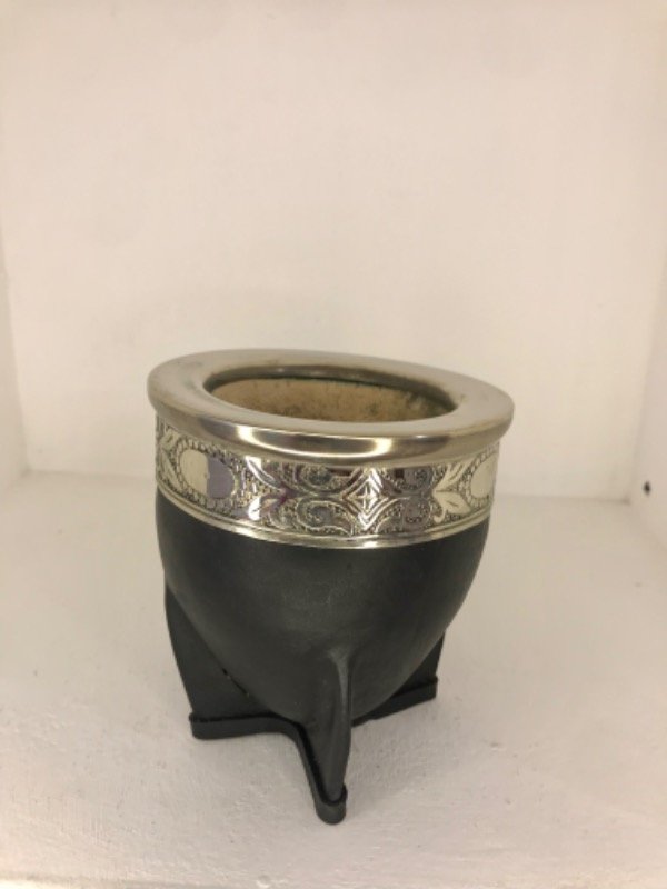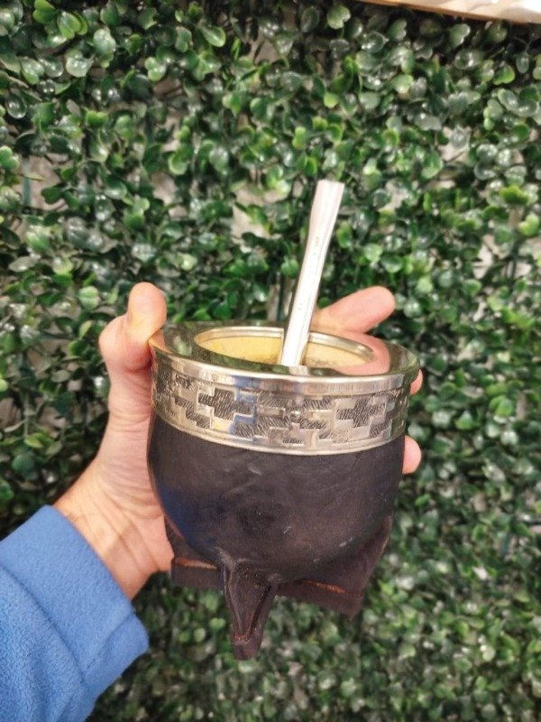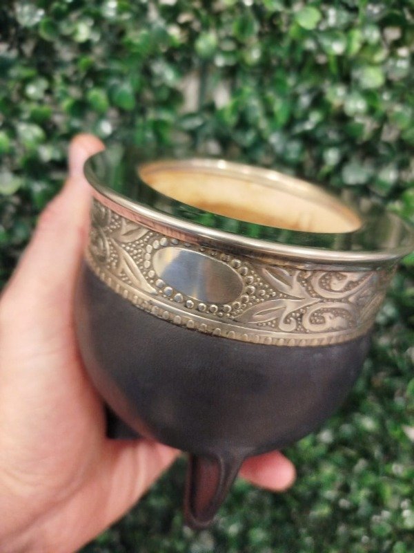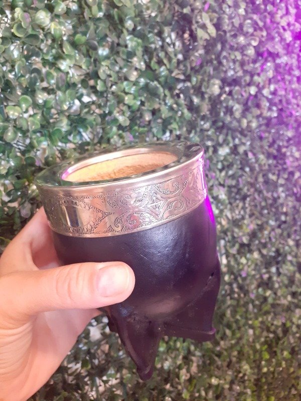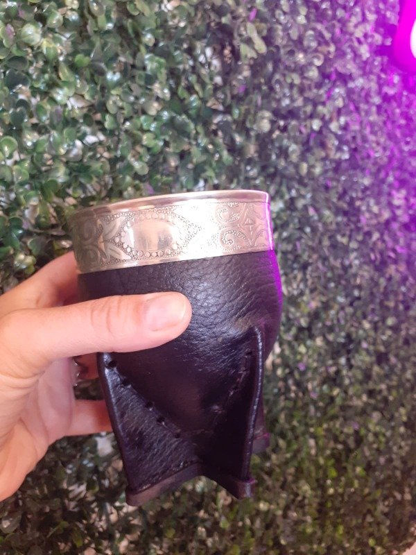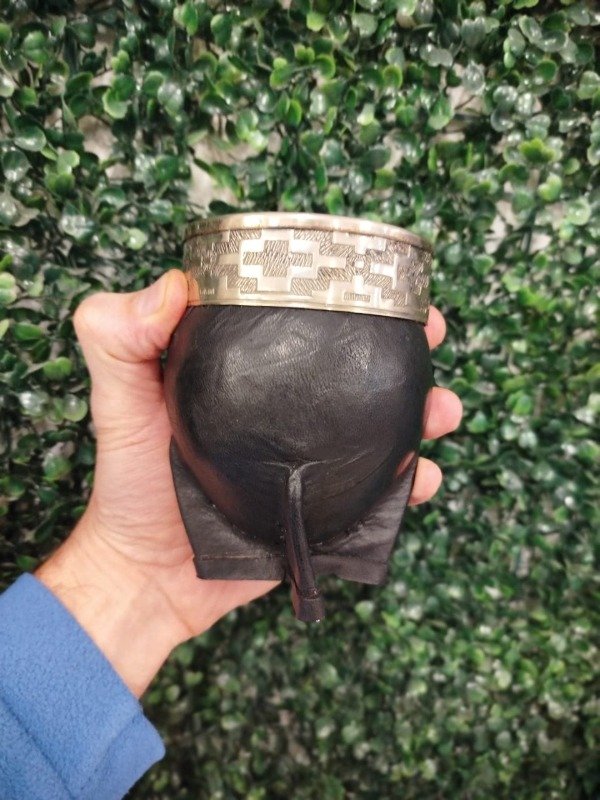 Mate de calabaza forrada en cuero con virola de alpaca + Bombilla De REGALO