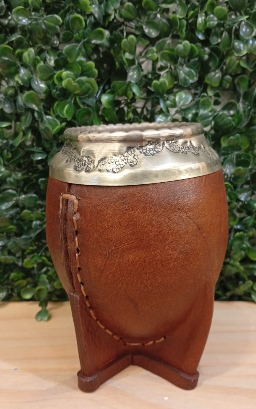 Mate de calabaza forrada en cuero con virola de alpaca + Bombilla De REGALO