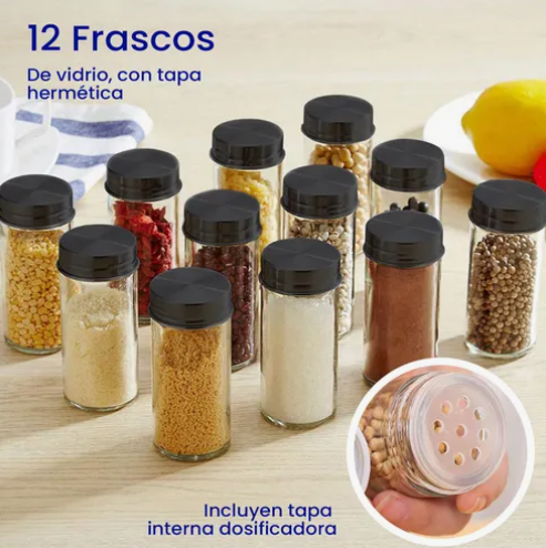 -12 Frascos de Vidrio para diferentes especias